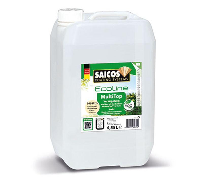 Saicos Eco MultiTop lacker finns i fyra glanstal: 9980 Ultramatt (7 Glosspoints), 9985 Matt (11 Glosspoints), 9990 Sidenmatt (20 Glosspoints) ,9995 Blank (32 Glosspoints). Saicos Eco MultiTop Seal lacken utgör basen i systemet och uppfyller i sin 1 K version standard kraven och är klar att användas.